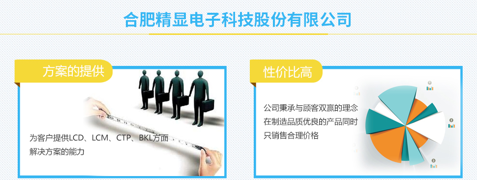 ?合肥精顯電子科技股份有限公司成立于2012年,由液晶行業(yè)知名企業(yè)廈門精顯電子有限公司投資建設,是一家研發(fā)、生產(chǎn)、銷售高品質液晶屏(LCD)、液晶顯示模塊(LCM)、背光(LED)、電容式觸摸屏(CTP)等節(jié)能環(huán)保產(chǎn)品并能為顧客提供解決方案的高新科技企業(yè)。 ?公司占地55畝,擁有建筑面積超過20000平米和潔凈廠房5400平米。 ?公司擁有一個超過15年以上LCD行業(yè)運營制造經(jīng)驗的團隊。 ?公司獲得研發(fā)專利20余項。 ?公司通過C-TPAT認證,ISO9001:2008認證,產(chǎn)品通過了ROHS、REACH。 ?我們產(chǎn)品廣泛應用于智能儀表(水表,電表,氣表)、家電、儀器儀表、計量器械、文教 器具、UPS電源、智能手機機、平板電腦等電子產(chǎn)品的顯示和控制。目前我們已樹立了良好的品牌形象,并與眾多公司(如GE, Ja...